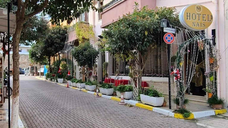 Das Hotel Nais bietet eine ideale Lage im Zentrum von Durrës und ist nur wenige Schritte vom Amphitheater entfernt. Die klimatisierten Zimmer mit kostenfreiem WLAN bieten Ihnen einen komfortablen Aufenthalt mit Blick auf die Stadt oder das Meer. Der nächste Strand ist nur 500 m entfernt. Genießen Sie das Frühstück im hoteleigenen Restaurant und erkunden Sie die umliegenden Restaurants, Bars, Cafés und Einkaufsmöglichkeiten. Die historische Stadt Kiuja und verschiedene bekannte Strände sind leicht mit dem Auto erreichbar.