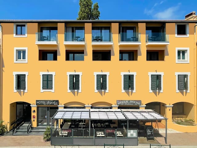 Das Hotel Le Napoleon in La Turbie an der Französischen Riviera bietet eine ideale Unterkunft für Ihren Aufenthalt. Mit einer Bar, einem eigenen Restaurant und komfortablen Zimmern mit Balkon ist das Hotel der perfekte Ort, um die Schönheit der Umgebung zu erkunden. Genießen Sie frische, saisonale Gerichte im Steak House und entspannen Sie bei einem Drink in der Hotelbar. Die Lage des Hotels ermöglicht es Ihnen, die nahe gelegenen Städte Nizza und Ventimiglia zu besuchen und historische Sehenswürdigkeiten wie das römische Siegesdenkmal Tropaeum Alpium zu erkunden.