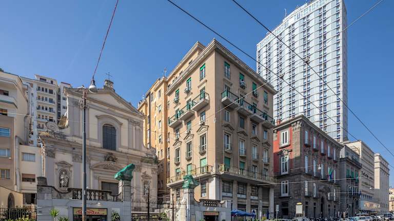Das Napolit'amo Hotel Medina liegt im Zentrum von Neapel, nur wenige Gehminuten von der Piazza del Plebiscito und der Gegend Spaccanapoli entfernt. Die Lage ermöglicht es Ihnen, die Stadt bequem zu Fuß zu erkunden und die öffentlichen Verkehrsmittel, wie den U-Bahnhof Toledo, zu nutzen. In der Nähe finden Sie auch den Hafen Molo Beverello, von dem aus Sie Fähren zu den Inseln Capri, Ischia und Procida nehmen können.