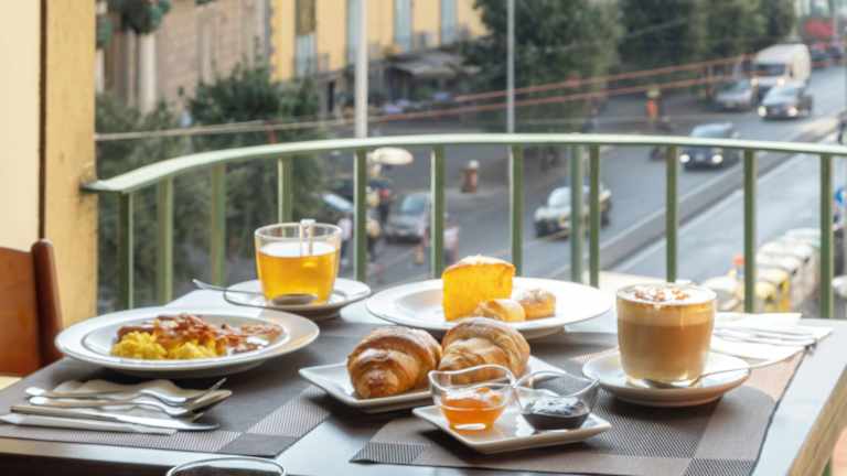 Beginnen Sie Ihren Tag mit einem reichhaltigen Frühstücksbuffet im Speisesaal des Hotels, der einen Blick auf die Innenstadt von Neapel bietet. Hier können Sie sich für einen ereignisreichen Tag stärken. In der Umgebung des Hotels finden Sie auch eine Vielzahl von Restaurants und Bars, in denen Sie die neapolitanische Küche probieren können.