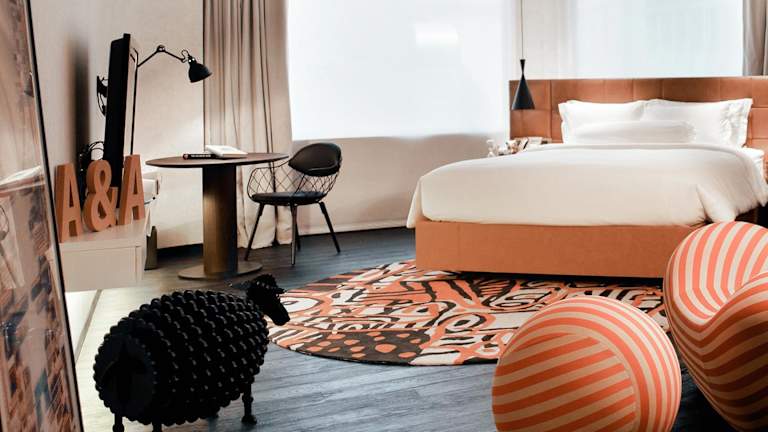 Das Naumi Hotel bietet seinen Gästen auf 10 Etagen insgesamt 40 stilvolle Zimmer. Jedes Zimmer verfügt über eine Klimaanlage, eine Kochnische mit Mikrowelle und Kaffeemaschine sowie einen Wohnbereich. Die Zimmer sind mit einem Kingsize-Bett ausgestattet und können auch Baby- und Zustellbetten auf Anfrage bereitstellen. Zur weiteren Ausstattung gehören ein Safe, eine Minibar, ein Schreibtisch, ein TV-Gerät, ein DVD-Player, WLAN und ein eigenes Badezimmer mit Dusche und Badewanne.