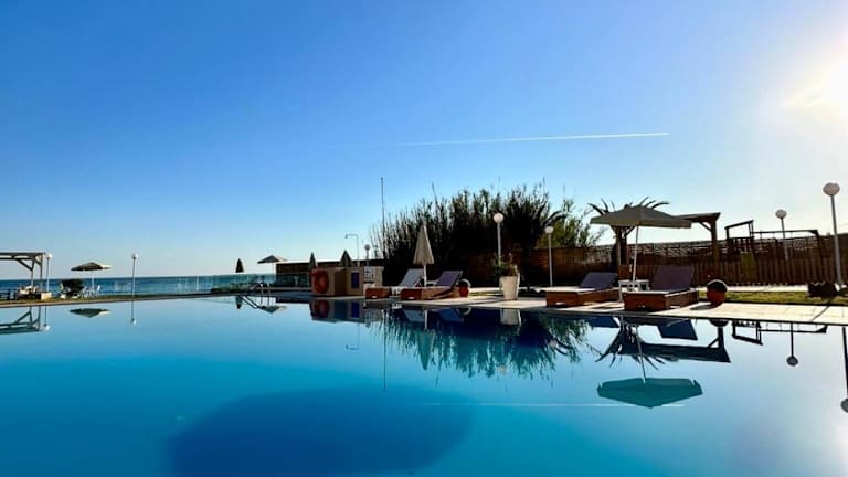 Am Strand und rund um den Pool des Hotels stehen Ihnen viele Liegestühle und Sonnenschirme zur Verfügung. Genießen Sie die Sonne und das Meer oder entspannen Sie sich im Schatten der Palmen. Für die kleinen Gäste gibt es einen Kinderpool und einen Kinderspielplatz, damit auch sie sich austoben können.