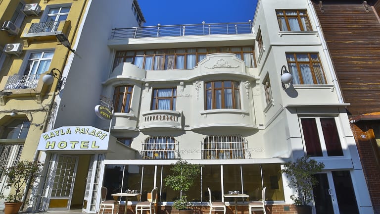 Das Nayla Palace Hotel-Special Category in Istanbul ist ein charmantes Hotel im türkischen Stil mit einer beeindruckenden Fassade und Blick auf das Marmarameer. Die Zimmer sind im traditionellen Stil eingerichtet und verfügen über kostenfreies WLAN. Das Hotel liegt nur wenige Schritte von der Hagia Sophia entfernt und bietet ein tägliches Frühstück sowie Getränke im Café. Die Mitarbeiter an der 24-Stunden-Rezeption helfen Ihnen gerne bei der Organisation von Flughafentransfers, Mietwagen und geben Ihnen Informationen zur Umgebung. Das Hotel ist auch nur wenige Gehminuten von vielen historischen Sehenswürdigkeiten wie dem Topkapi-Palast, der Blauen Moschee und dem Islamischen Kunstmuseum entfernt.