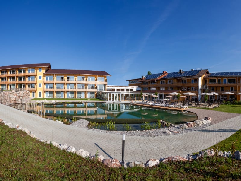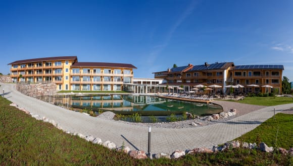 Am Fuße der Alpspitze zwischen Schloss Neuschwanstein bei Füssen, der Allgäumetropole Kempten und dem Grenzgebiet zu Österreich / Tirol empfängt Sie das 4-Sterne Hotel Nesselwanger Hof und bietet einen herrlichen Blick in die bayerischen Alpen. Über die Autobahn A 7 erreichen Sie ganz bequem den Ort Nesselwang und das Hotel Nesselwanger Hof. Von der Ausfahrt bis zum Hotel sind es nur ca. 7 min. Die Zimmer haben alle Balkon oder Terrasse und sind ausgestattet mit Dusche, WC, Wlan-Internet –kostenlos-, LCD-Flachbildschirm. Im Spabereich des Hotels befinden sich Saunen, Dampfbad, Ruheräume und ein beheiztes Schwimmbad. Unmittelbar vor dem Hotel erstreckt sich das Naherholungsgebiet Alpspitze mit dem Skigebiet, der Sommer- und Winterrodelbahn und dem großen Wandergebiet. Der ideale Ausgangspunkt zum Wandern, Rad fahren, Langlaufen, Joggen und Skifahren. Morgens bietet das reichhaltige Frühstücksbuffet mit Front-Cooking-Station des Hotels Nesselwanger Hof einen gesunden Start in den Tag und am Abend schlemmen Sie in einem unserer Restaurantbereiche Ihr 4-Gänge-Wahlmenü. Wer im Nesselwanger Hof übernachtet, bekommt von uns die KönigsCard mit über 200 Aktivitäten. Eine Berechtigung zur kostenlosen Nutzung von Bergbahnen, Eintritte in Erlebnisbäder, eine 3-Stunden-Skikarte täglich und vieles mehr.