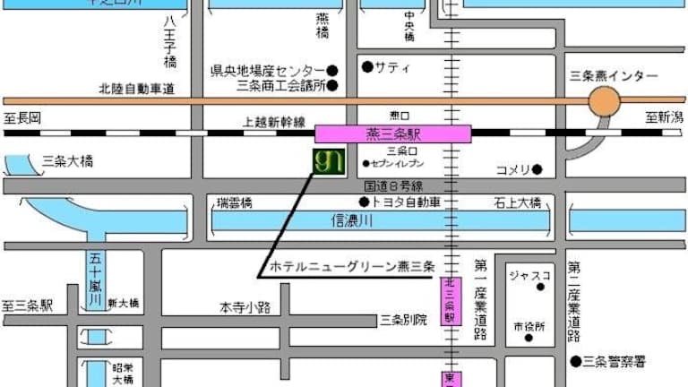 Das Hotel New Green Tsubame Sanjo liegt nur 35 km vom Bahnhof Niigata entfernt und bietet eine gute Anbindung an die öffentlichen Verkehrsmittel. Der Yahiko-Schrein ist ebenfalls in der Nähe und lädt zu einem Besuch ein. Das Aquarium Teradomari, der Bahnhof Nagaoka und der kleine Tierzoo Yukyuzan sind ebenfalls leicht zu erreichen.