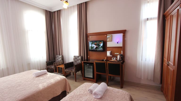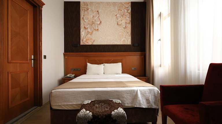 Das Hotel befindet sich im Stadtviertel Çemberlitaş, direkt neben dem historischen Stadtteil Sultanahmet. Die berühmten Sehenswürdigkeiten wie der Große Basar, die Blaue Moschee, die Hagia Sophia und der Topkapi-Palast sind bequem zu Fuß erreichbar. Das Viertel Kumkapi, bekannt für seine Fischrestaurants und Bars am Ufer des Marmarameers, liegt etwa 1 km entfernt. In der Umgebung finden Sie auch zahlreiche Geschäfte und Haltestellen öffentlicher Verkehrsmittel. Das Stadtzentrum mit den Nachtclubs in Beyoğlu und dem Taksim-Platz ist mit den öffentlichen Verkehrsmitteln in etwa 30 Fahrminuten erreichbar. Der Flughafen Istanbul-Atatürk liegt etwa 15 km entfernt und der Flughafen Sabiha-Gökçen etwa 46 km.