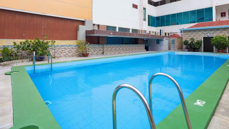 Das Nha Trang Lodge Hotel befindet sich direkt am Strand von Nha Trang und ist nur 50 m vom Platz 2/4 entfernt. Die Umgebung bietet zahlreiche Sehenswürdigkeiten, Einkaufsmöglichkeiten und Unterhaltungsmöglichkeiten, die bequem zu Fuß erreichbar sind. Das Hotel thront majestätisch über der Nha-Trang-Bucht und bietet einen atemberaubenden Blick auf die Umgebung. Der Bahnhof Nha Trang ist nur 5 Fahrminuten entfernt und der Wasserpark Phu Dong ist 1,2 km entfernt.