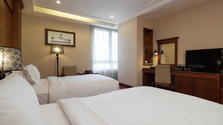 Die modernen Zimmer des Nhat Ha L'Opera Hotels sind klimatisiert und mit Holzmöbeln und einem Flachbild-Kabel-TV ausgestattet. Jedes Zimmer verfügt über ein eigenes Badezimmer mit Warm- und Kaltwasser sowie einen Haartrockner. Zur weiteren Ausstattung gehören Tee- und Kaffeezubehör, eine Minibar und ein 24-Stunden-Zimmerservice für zusätzlichen Komfort.