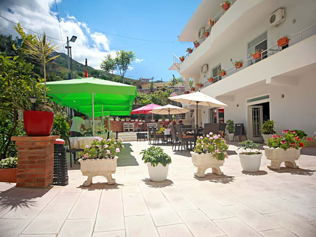 Hotel Nika which is just 150 m away from the sea is located in the border line of two beautiful seas, giving her guests the possibility of enjoying the Adriatic sea(sandy one)and the Ionian sea(rocky one). All rooms are elegantly decorated, Boasting modern details as well as original features of the building. Each comes with air conditioning, a flat-screen TV, and a fully equipped en bathroom. Each has a private bathroom with a hairdryer and free toiletries. All of them also have a balcony. A continental breakfast is provided daily and any other kind of breakfast is available on request. Everybody loves the fresh air and the tranquility at the patio enjoying the most delicious and freshest food around. Hotel Nika is a great choice for travelers interested in fine dining, food and entertainment.