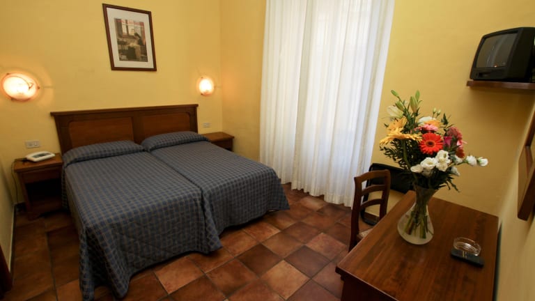 Die Zimmer im Hotel Nizza sind klimatisiert und bieten modernen Komfort. Das historische Gebäude aus dem 14. Jahrhundert wurde bei der Renovierung mit viel Liebe zum Detail gestaltet. Klassisches Mobiliar, Nussbaumholz und Marmor aus der Region verleihen den Zimmern eine besondere Atmosphäre. Alle Zimmer sind schallisoliert und verfügen über ein eigenes Badezimmer. Ein LED-Sat-TV sorgt für Unterhaltung.