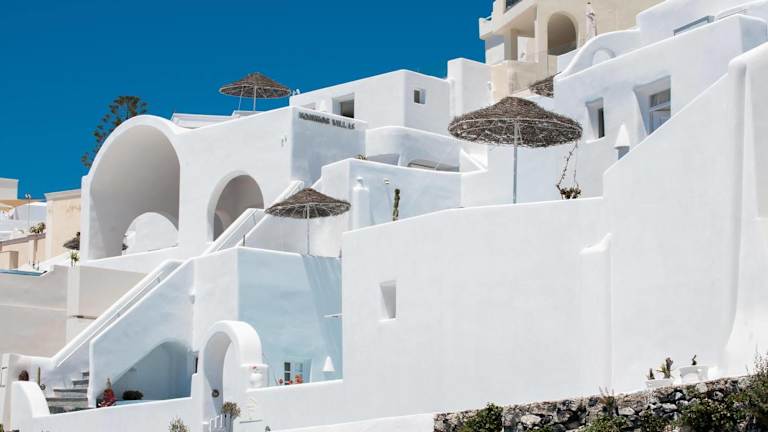 Das Nomikos Villas in Fira ist eine charmante Unterkunft, die typisch griechischen Flair bietet. Von den Hügeln von Firostefani aus haben Sie einen atemberaubenden Blick auf die Ägäis und können die spektakulären Sonnenuntergänge bewundern. Die Studios, Suiten und Apartments sind alle geschmackvoll eingerichtet und bieten einen romantischen Rückzugsort. Entspannen Sie auf den malerischen Terrassen oder im Whirlpool und genießen Sie die Ruhe und Schönheit von Santorini.