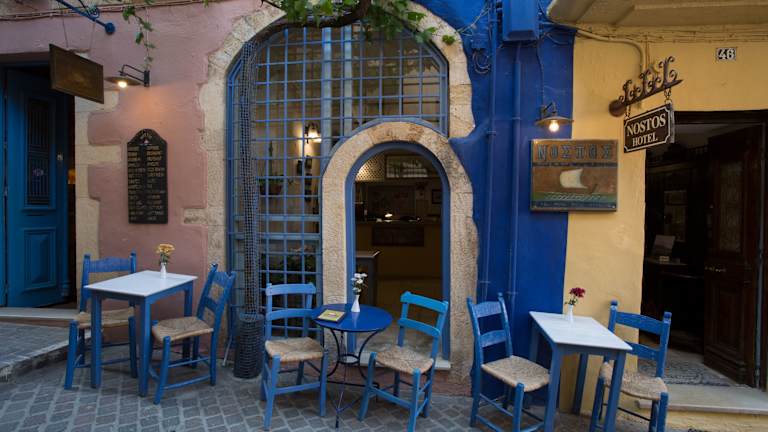 Das Nostos Hotel in Chania ist ein charmantes, gastfreundliches Hotel, das in einem historischen Herrenhaus aus dem 15. Jahrhundert untergebracht ist. Mit seiner traditionellen Einrichtung und modernen Annehmlichkeiten bietet es den Gästen einen komfortablen Aufenthalt. Die Lage im Herzen der Altstadt von Chania und die Nähe zum venezianischen Hafen machen das Hotel zu einem idealen Ausgangspunkt für Erkundungen.