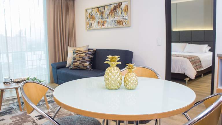 Das Novelty Suites Hotel liegt zentral in Medellín und ist sowohl für Geschäftsreisende als auch für Familien ideal gelegen. Es befindet sich in unmittelbarer Nähe des Einkaufszentrums Oviedo und bietet eine Vielzahl von Geschäften, Restaurants und Unterhaltungsmöglichkeiten. Der Flughafen ist etwa 28,8 km entfernt und das Stadtzentrum von Medellín ist bequem zu Fuß erreichbar.