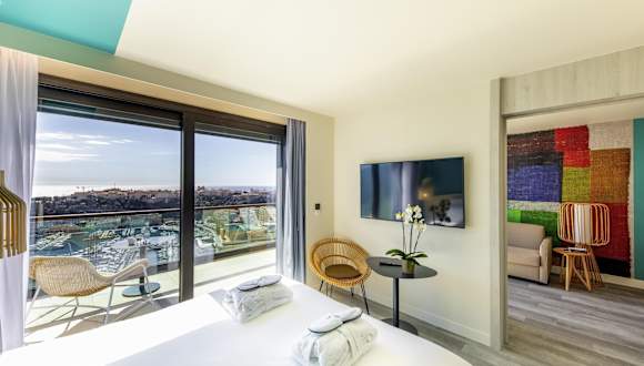 Die klimatisierten Zimmer sind mit einem Doppelbett und einem Sofabett ausgestattet. Jedes Zimmer verfügt über ein eigenes Bad mit Dusche und Badewanne sowie über einen Safe, eine Minibar und eine Tee-/Kaffeemaschine. Zu den Annehmlichkeiten zählen WLAN und ein TV-Gerät. Das Hotel bietet auch rollstuhlgerechte Zimmer und Familienzimmer.
