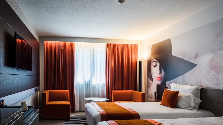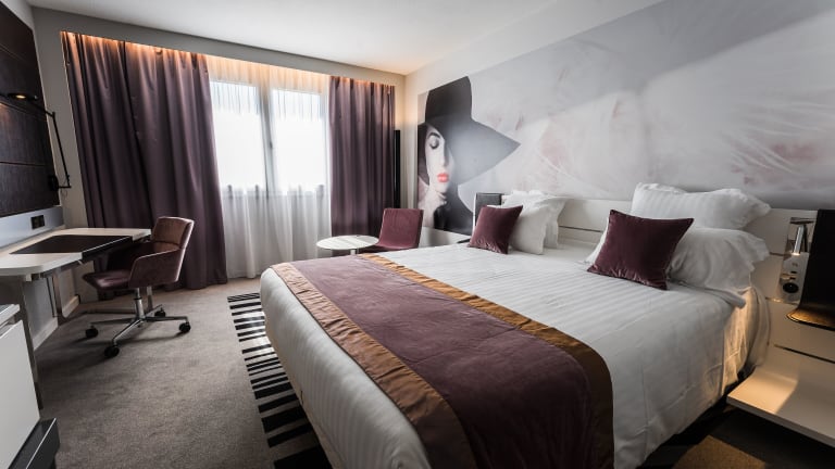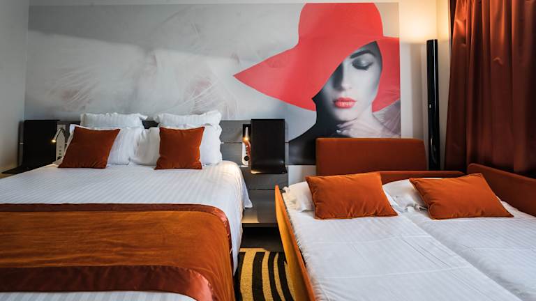 Das Hotel verfügt über 107 Zimmer auf 3 Etagen, die über einen Aufzug erreichbar sind. Die Zimmer sind komfortabel eingerichtet und verfügen über Klimaanlage, Safe, Minibar, Schreibtisch, Telefon, Flachbild-TV mit Satellitenempfang und kostenfreies WLAN. Die Badezimmer sind mit Dusche oder Badewanne, Haartrockner und kostenfreien Pflegeprodukten ausgestattet. Es gibt auch Familien- und Nichtraucherzimmer sowie rollstuhlgerechte Zimmer mit barrierefreien Bädern.
