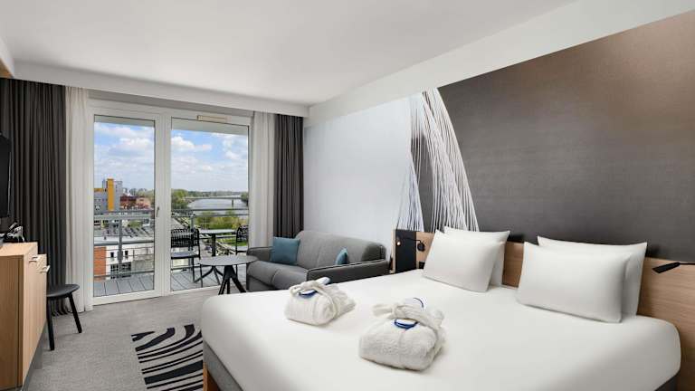 Die klimatisierten Zimmer im Novotel Szeged sind komfortabel eingerichtet und verfügen über einen Balkon mit Flussblick. Zur weiteren Ausstattung gehören ein Flachbild-Sat-TV, ein Schreibtisch, ein Wasserkocher und eine Minibar. Das eigene Bad ist mit einer Badewanne oder Dusche sowie kostenfreien Pflegeprodukten ausgestattet.