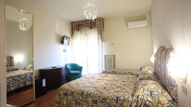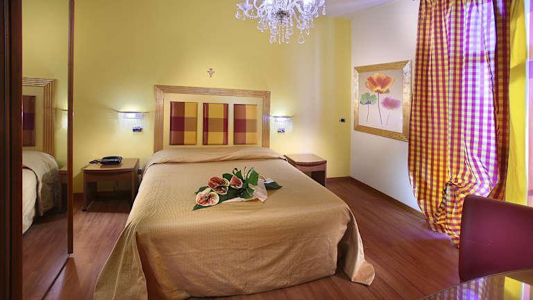 Das Hotel verfügt über 58 Zimmer, die alle klassisch-modern eingerichtet und klimatisiert sind. Jedes Zimmer ist mit Sat-TV, eigenem Bad mit Haartrockner und Pflegeprodukten ausgestattet. Einige Zimmer bieten zudem einen Balkon. WLAN ist in den öffentlichen Bereichen kostenfrei verfügbar.