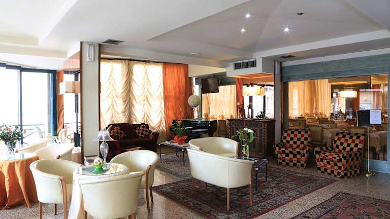 Im eleganten Restaurant des Hotels können Sie toskanische Gerichte und hausgemachte Kuchen genießen. Das Restaurant verfügt über einen Marmorboden und dekorative Spiegel und bietet eine stilvolle Atmosphäre für ein kulinarisches Erlebnis. Das Frühstücksbuffet umfasst eine Auswahl an süßen und herzhaften Speisen wie Kuchen, Sandwiches, Käse und Aufschnitt.