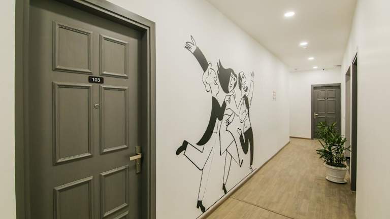 Es besteht die Möglichkeit, eine Essenslieferung in die Unterkunft zu erhalten. Gemeinschaftliche Essbereiche sind vorhanden, wobei Abstandsregeln eingehalten werden.