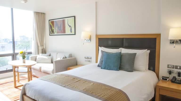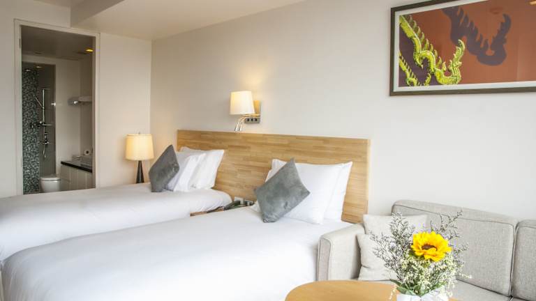 Das Oakwood Residence Sukhumvit 24 befindet sich in idealer Lage, nur 200 m von den Unterhaltungs- und Einkaufsmöglichkeiten entlang der Sukhumvit Road entfernt. Das Hotel liegt auch in der Nähe des BTS-Bahnhofs Phrom Phong und des Einkaufszentrums Emporium. In der Umgebung finden Sie eine Vielzahl von Restaurants, Bars und Geschäften. Der internationale Flughafen Suvarnabhumi ist etwa 50 Fahrminuten entfernt.