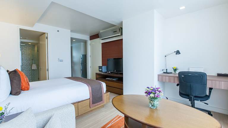 Die Apartments im Oakwood Residence Sukhumvit 24 sind geräumig und gut ausgestattet. Jedes Apartment verfügt über einen 32-Zoll-Flachbild-TV, eine voll ausgestattete Küche, ein Esszimmer und ein eigenes Badezimmer. Zur weiteren Ausstattung gehören ein DVD-Player, eine Stereoanlage und kostenfreies WLAN.