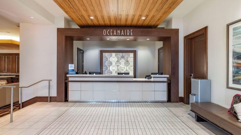 Das Oceanaire Resort Hotel liegt direkt am Strand von Virginia Beach und bietet somit einen herrlichen Blick auf das Meer. An der Promenade finden Sie zahlreiche Geschäfte und künstlerische Unterhaltungsmöglichkeiten. Die Lage des Hotels ist ideal für Strandliebhaber und bietet die perfekte Ausgangsbasis, um die Umgebung zu erkunden. Der Wasserpark Ocean Breeze und das Virginia Aquarium and Marine Science Center sind nur eine kurze Autofahrt entfernt.