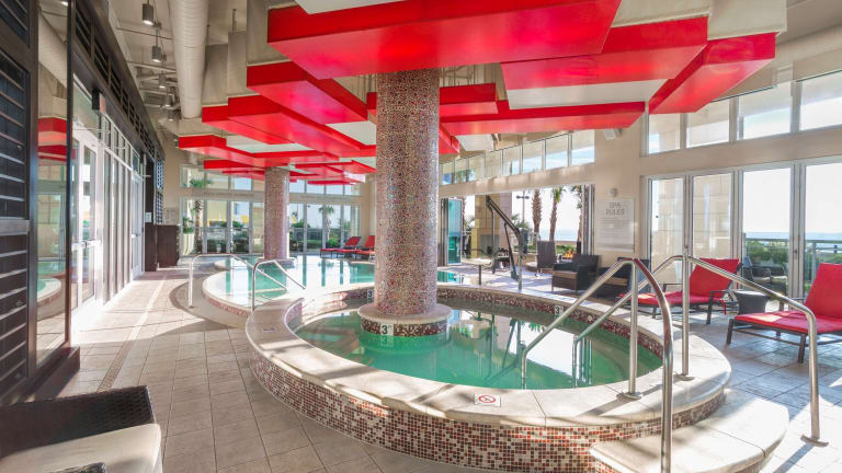 Das Oceanaire Resort Hotel verfügt über 4 Innen- und Außenpools, darunter auch einen Kinderpool. Zusätzlich gibt es einen Whirlpool im Wellnessbereich, in dem Sie sich entspannen können. Das Hotel bietet auch ein Fitnessstudio, in dem Sie trainieren können. Für Familien gibt es ein Kinderspielzimmer und ein buntes Spiele- und Unterhaltungsprogramm für Kinder.