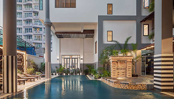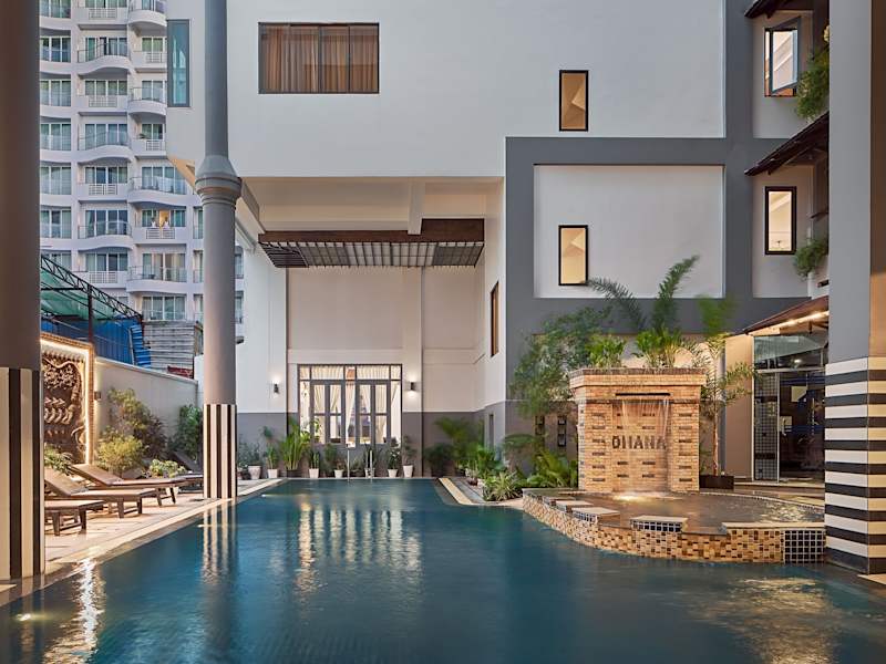 Das Ohana Phnom Penh Palace Hotel ist ein wunderbar gelegenes Hotel im Herzen des Viertels Riverside in Phnom Penh. Mit seinen beiden Außenpools, dem Restaurant und der Bar auf dem Dach bietet es seinen Gästen eine entspannte Atmosphäre und einen atemberaubenden Panoramablick auf die Stadt und die umliegenden Gewässer. Die Zimmer sind komfortabel und gut ausgestattet, und das Hotel bietet kostenloses WLAN in allen Bereichen. Die zentrale Lage ermöglicht es den Gästen, die Attraktionen der Stadt bequem zu erkunden. Das freundliche und hilfsbereite Personal steht rund um die Uhr zur Verfügung, um bei der Organisation von Ausflügen zu helfen.