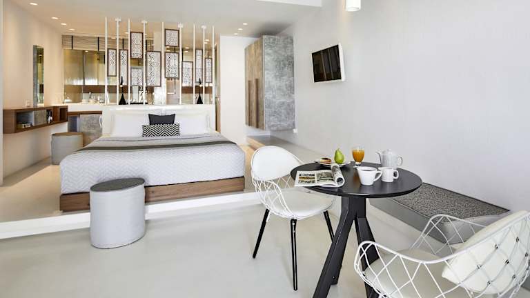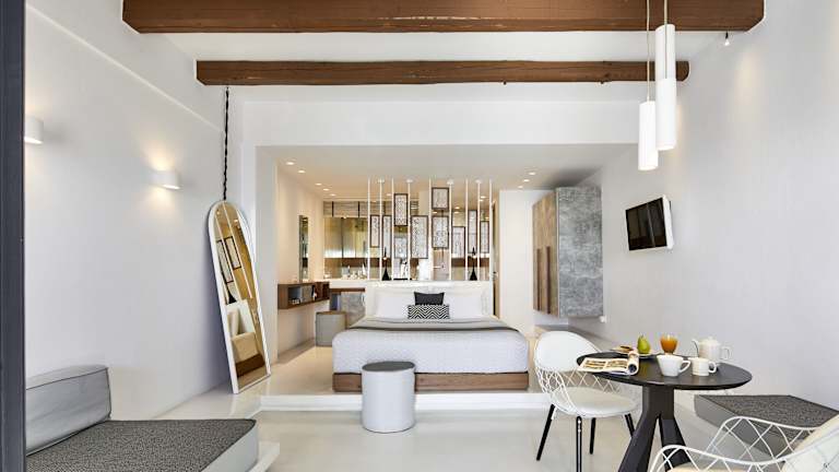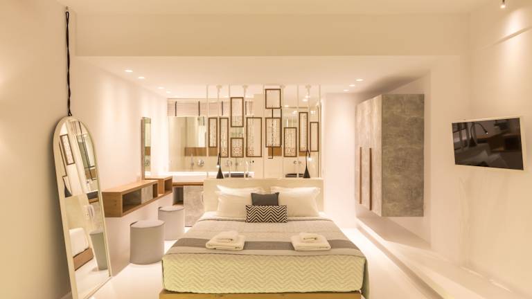 Die Oia Suites bieten geräumige Unterkünfte im minimalistischen Stil. Einige der Zimmer verfügen über eine Küchenzeile, während alle Zimmer über einen LCD-TV, Klimaanlage und ein eigenes Bad verfügen. Jede Suite hat auch einen Balkon, von dem aus Sie die herrliche Aussicht genießen können. Die Zimmer werden täglich gereinigt und bei Ihrer Ankunft steht kostenfreies Wasser in der Minibar für Sie bereit.