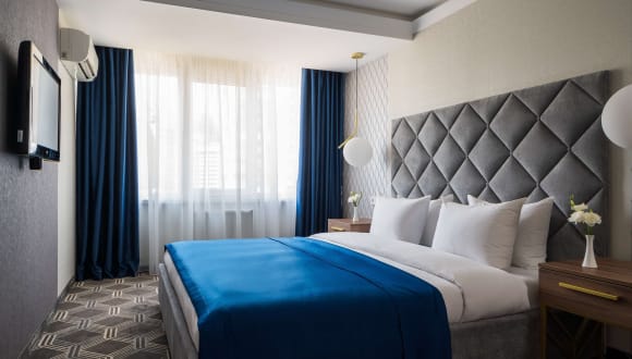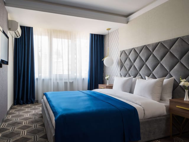 Die Zimmer im OK Odessa Hotel sind modern und stilvoll eingerichtet und bieten eine angenehme Atmosphäre. Die Zimmer sind in warmen Creme- und Erdfarbtönen gehalten und verfügen über reich gemusterte Teppiche. Zur Ausstattung gehören ein Flachbild-TV, ein Kühlschrank und ein eigenes Badezimmer mit kostenfreien Pflegeprodukten. Einige Zimmer verfügen auch über einen Balkon oder eine Terrasse.