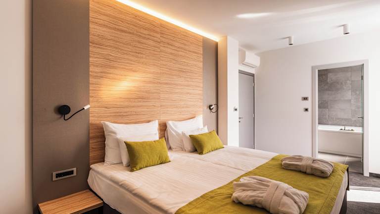Die Zimmer im Hotel Olea sind stilvoll eingerichtet und bieten Ihnen allen Komfort, den Sie für einen angenehmen Aufenthalt benötigen. Zur Ausstattung gehören ein eigenes Bad, luxuriöse Pflegeprodukte und ein Balkon. In den Suiten finden Sie zusätzlich einen gemütlichen Sitzbereich mit einem Schlafsofa und einem Schreibtisch. Die Villen im Hotel verfügen über alle modernen Annehmlichkeiten und bieten Ihnen zusätzlich einen eigenen Pool und eine Sonnenterrasse.