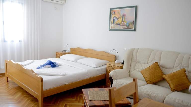 Das Hotel Sanja, ehemals Oliva, befindet sich in zentraler und dennoch ruhiger Lage in Budva, nur 5 Gehminuten vom langen Kiesstrand Slovenska Plaza entfernt. Die charmante Altstadt von Budva mit ihren zahlreichen Unterhaltungsmöglichkeiten ist nur 1 km entfernt und kann bequem über die Strandpromenade erreicht werden.