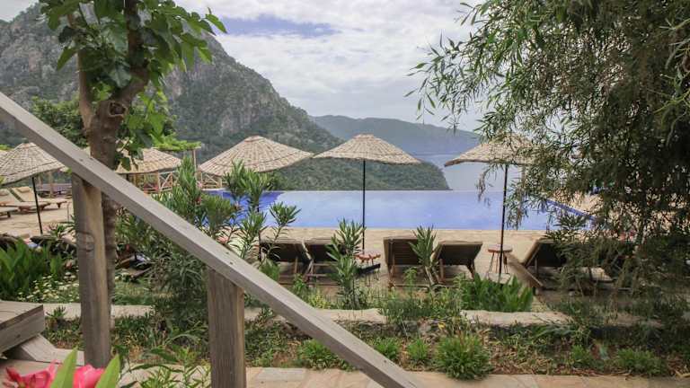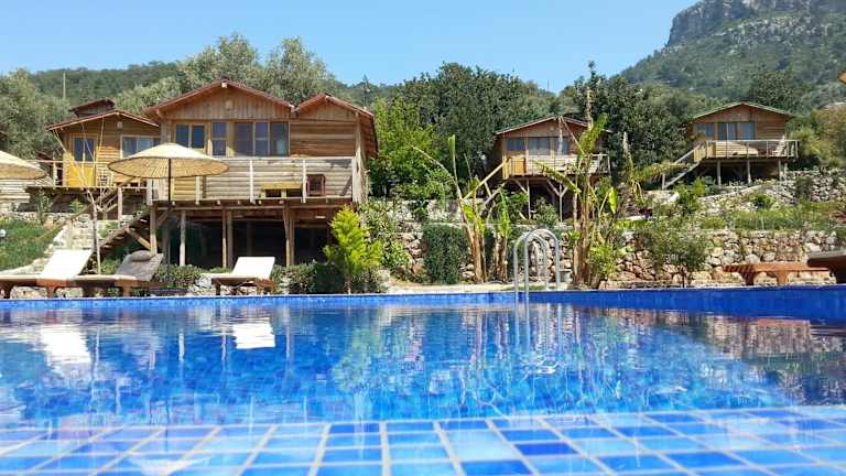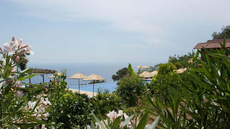 Das Olive Garden Kabak Hotel bietet eine ideale Lage, nur 15 km von der Blauen Lagune in Ölüdeniz entfernt. Umgeben von Bäumen und mit einem atemberaubenden Blick auf das Mittelmeer, können Gäste hier in gemütlichen Bungalows entspannen und den Außenpool genießen. Das hauseigene Restaurant serviert mediterrane Gerichte, zubereitet vom einheimischen Küchenchef, während an der Bar erfrischende Getränke angeboten werden. Der Panoramablick auf das Meer und der kostenfreie WLAN-Zugang in den öffentlichen Bereichen runden das Angebot ab.
