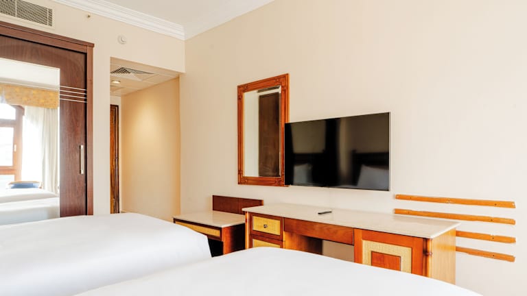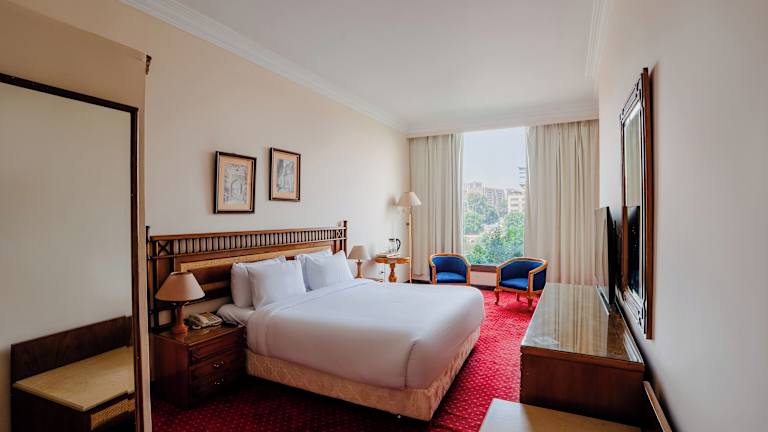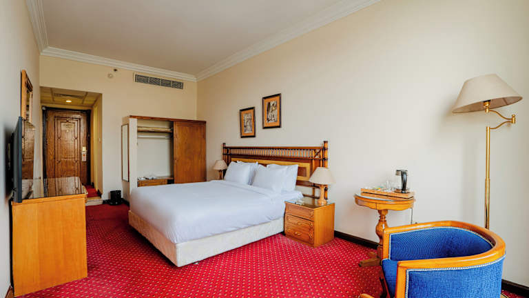 Die Zimmer im Om Kolthoom Hotel sind schlicht und modern eingerichtet und bieten den Gästen einen komfortablen Rückzugsort. Jedes Zimmer verfügt über ein eigenes Bad mit Dusche und Badewanne, Sat-TV und WLAN-Zugang. Von den Balkonen aus haben die Gäste einen herrlichen Blick auf den Nil.