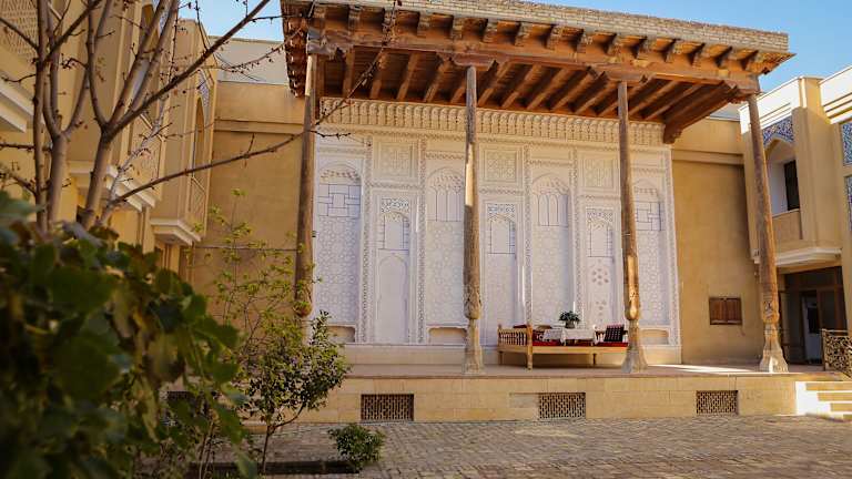 Das Omar Khayyam Hotel befindet sich in Buxoro, einer historischen Stadt in Usbekistan. Die Lage des Hotels ermöglicht es den Gästen, die zahlreichen Sehenswürdigkeiten und historischen Stätten der Stadt leicht zu erreichen. Die Altstadt von Buxoro, ein UNESCO-Weltkulturerbe, ist nur eine kurze Autofahrt entfernt. Hier können Besucher die prächtigen Madrasas, Moscheen und Mausoleen bewundern. Der internationale Flughafen von Buxoro ist ebenfalls in der Nähe und bietet eine bequeme Anbindung für Reisende.