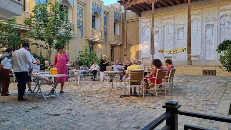 Das Omar Khayyam Hotel in Buxoro bietet eine komfortable Unterkunft mit einer Vielzahl von Annehmlichkeiten für einen angenehmen Aufenthalt. Das Hotel verfügt über einen schönen Garten und eine Terrasse, wo Gäste sich entspannen können. Das Restaurant und die Bar bieten kulinarische Köstlichkeiten und erfrischende Getränke. Die 24-Stunden-Rezeption, der Flughafentransfer und der Zimmerservice sorgen dafür, dass alle Bedürfnisse der Gäste erfüllt werden. Kostenloses WLAN ist in allen Bereichen des Hotels verfügbar. Ein kontinentales oder Halal-Frühstück wird angeboten, um den Tag gut zu beginnen. Geschäftsreisende können das Businesscenter nutzen und es steht auch ein Bankautomat in der Unterkunft zur Verfügung. Der internationale Flughafen Buxoro ist nur 7 km vom Hotel entfernt.