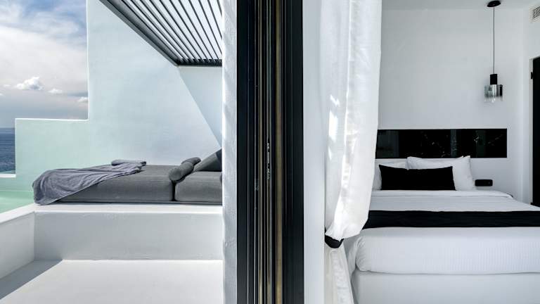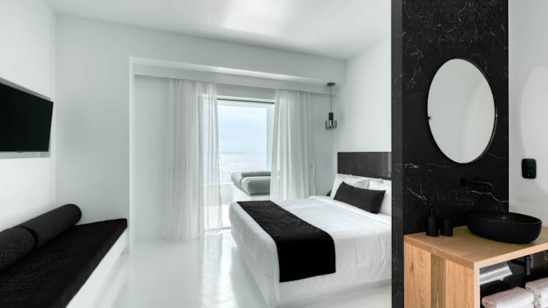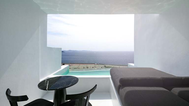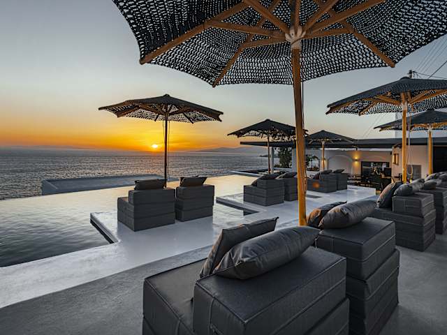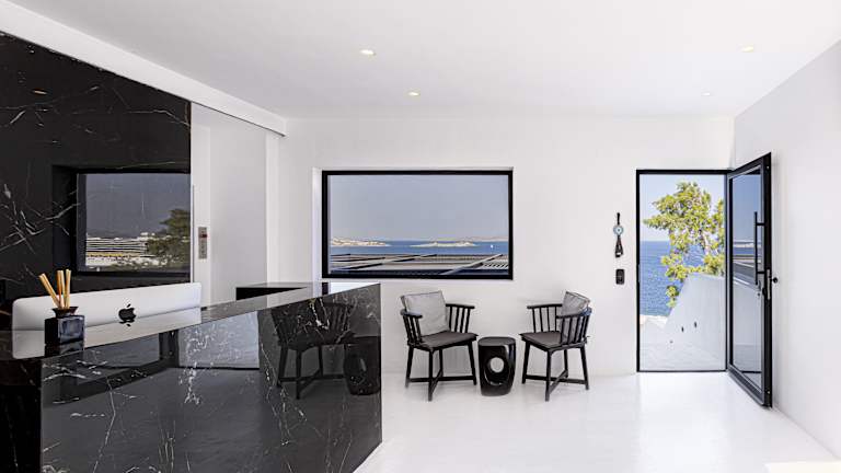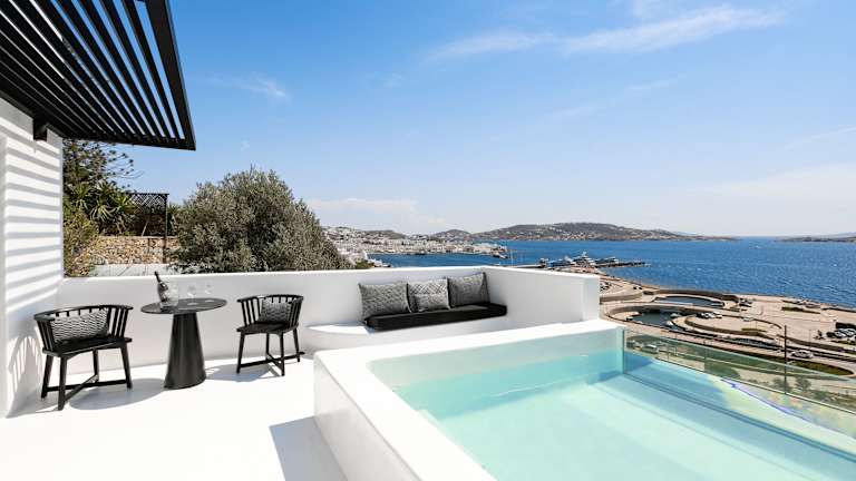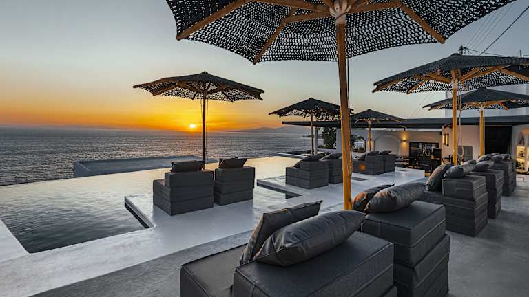 Das Tagoo Black Mykonos bietet einen perfekten Ort für einen entspannten Aufenthalt auf der Insel Mykonos. Das Hotel besticht durch seinen traditionellen Kykladen-Stil und seine Lage oberhalb des alten Hafens von Mykonos. Genießen Sie den atemberaubenden Meerblick von Ihrem eigenen Balkon und Ihrem eigenen Pool. Der Poolbereich mit Poolbar lädt zum Verweilen ein und bietet einen herrlichen Blick auf das Meer. Das freundliche Personal steht Ihnen gerne zur Verfügung und organisiert auf Wunsch Mietwagen, Motorräder oder Miniboote.