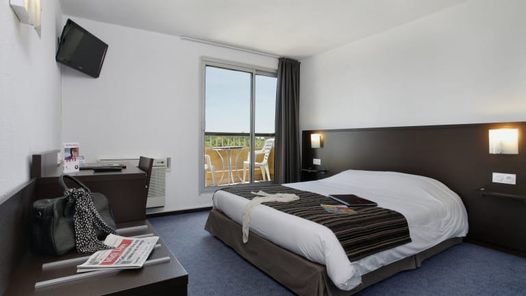 Die 40 Zimmer des Hotels Brit Hotel Opal Centre Port sind modern und komfortabel eingerichtet. Sie sind klimatisiert und mit Aufzügen erreichbar. Jedes Zimmer verfügt über einen Schreibtisch, einen Flachbild-Sat-TV und ein eigenes Bad mit Badewanne und Haartrockner. WLAN nutzen Sie in allen Bereichen des Hotels kostenlos. Das Solarium auf der 5. Etage bietet einen atemberaubenden Blick auf Cap d'Agde und den Hafen. Bitte beachten Sie, dass das Solarium vom 21. Juli bis zum 26. August 2023 geschlossen ist.