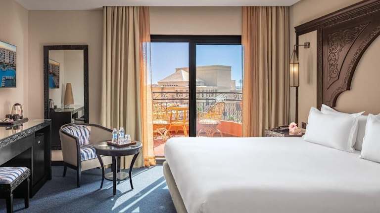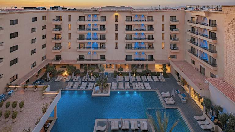 Das Opera Plaza Hotel Marrakech liegt in zentraler Lage im lebhaften Stadtteil Hivernage, direkt gegenüber dem Bahnhof Marrakesch und dem Royal Theatre. Es ist nur 3 km vom Platz Jamaâ El Fna und der Medina entfernt. Die Nähe zur Stadt ermöglicht es den Gästen, das pulsierende Leben von Marrakesch zu erkunden, während sie sich gleichzeitig in einer ruhigen Umgebung erholen können.