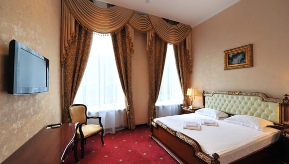 Das Oreanda Hotel in Odessa ist ein elegantes und individuell eingerichtetes Hotel, das seinen Gästen einen komfortablen Aufenthalt bietet. Die Lage in der Deribasovskaya Straße, nur wenige Gehminuten vom Opernhaus entfernt, ist ideal für alle, die das kulturelle Zentrum der Stadt erkunden möchten. Die geräumigen Zimmer und Suiten mit hohen Decken und klassischem Interieur bieten den Gästen ein gemütliches und stilvolles Ambiente. Das freundliche und zuvorkommende Personal steht den Gästen rund um die Uhr zur Verfügung und hilft gerne bei der Organisation von Transfers und Besichtigungstouren. In der Umgebung des Hotels finden Sie zahlreiche Restaurants und Geschäfte, die zu Fuß erreichbar sind.
