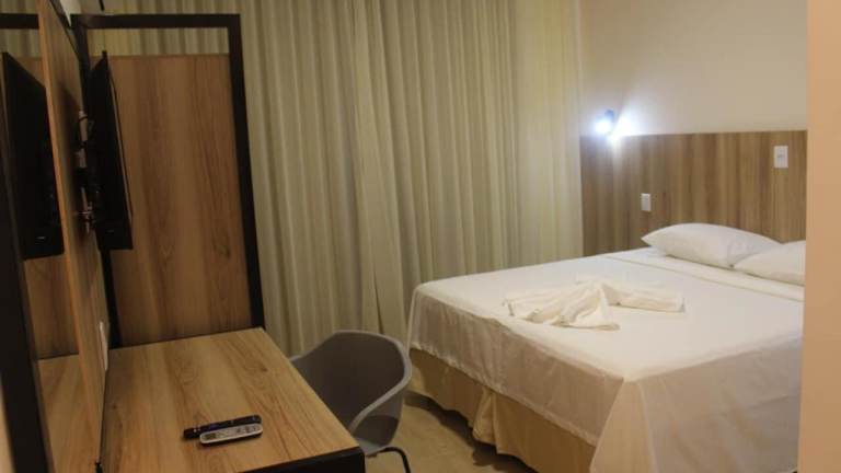 Die Zimmer im Hotel Oscar Gold Janaúba sind geräumig und komfortabel eingerichtet. Jedes Zimmer verfügt über einen Schreibtisch, einen Flachbild-TV und ein eigenes Badezimmer. Die Betten sind mit hochwertiger Bettwäsche ausgestattet und Handtücher werden gestellt. Alle Zimmer sind klimatisiert und bieten einen Kleiderschrank für Ihre persönlichen Gegenstände.