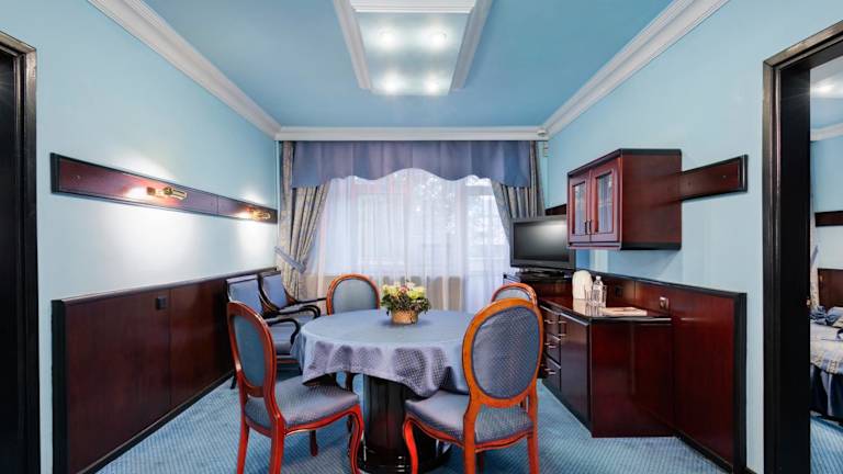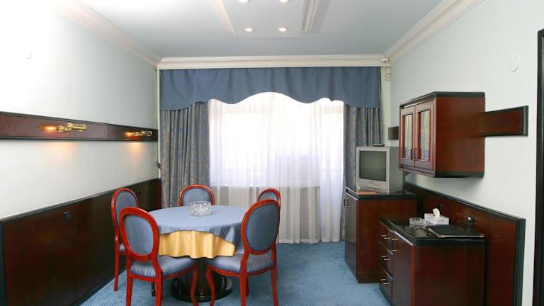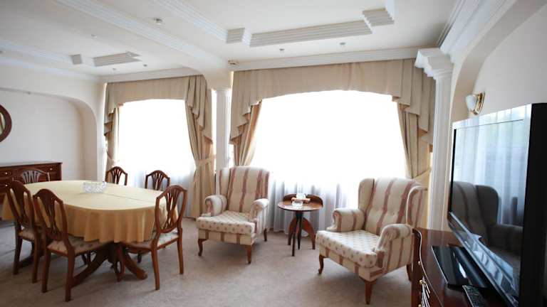 Beginnen Sie Ihren Tag im geräumigen Restaurant des Hotels mit einem reichhaltigen Frühstücksbuffet, das eine große Auswahl an Speisen bietet. Hier können Sie auch kasachische und europäische Küche genießen. Die stilvolle Lobbybar des Hotels bietet den ganzen Tag über Getränke und Snacks, während die Bar im Keller eine große Auswahl an Biersorten für Sie bereithält.