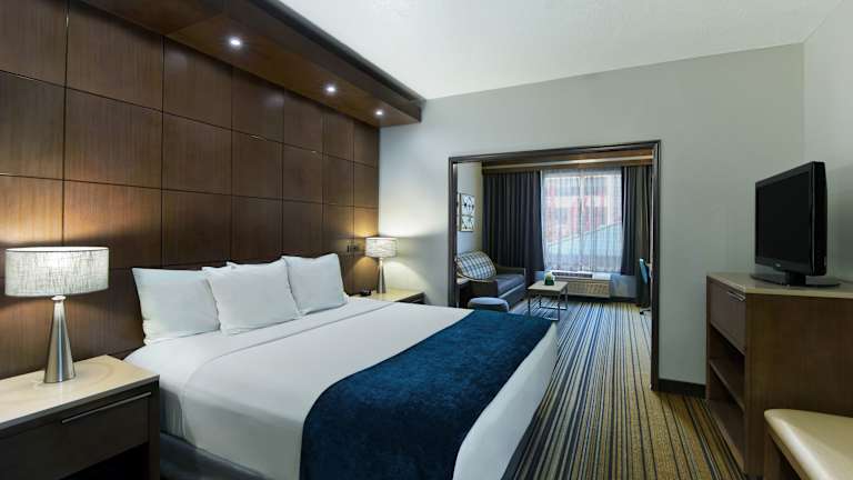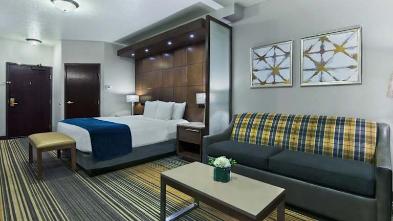 Die klimatisierten Suiten im Oxford Suites Spokane Downtown bieten Ihnen allen Komfort, den Sie während Ihres Aufenthalts benötigen. Jede Suite verfügt über einen eigenen Wohnbereich mit einem komfortablen Sofa, einen Essbereich und eine gut ausgestattete Küche mit Mikrowelle, Kühlschrank und Kaffeemaschine. Ein Kabel-TV sorgt für Unterhaltung und kostenloses WLAN steht Ihnen zur Verfügung, um mit der Welt in Verbindung zu bleiben. Die Suiten sind geschmackvoll eingerichtet und bieten Ihnen eine angenehme Atmosphäre, in der Sie sich wie zu Hause fühlen können.