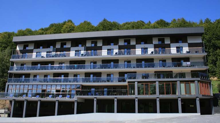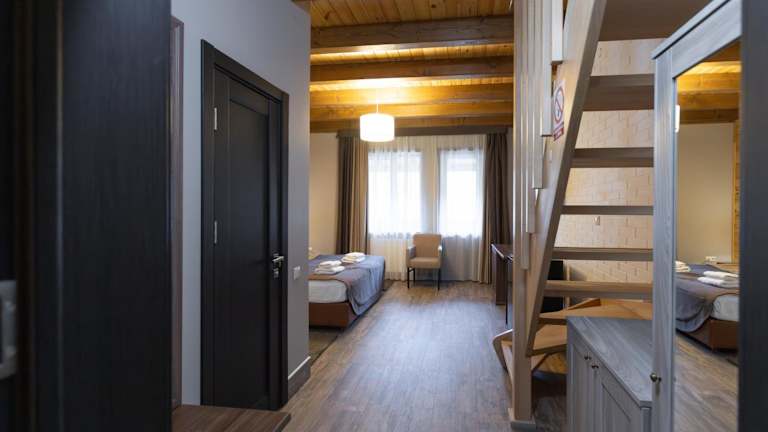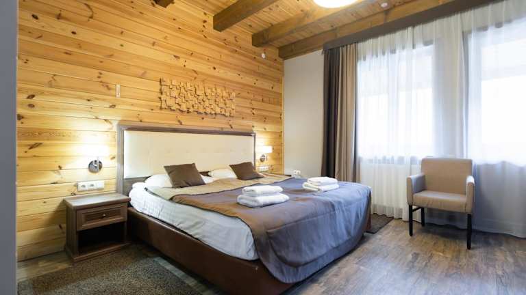 Das Hotel Ozero Vita befindet sich in einer ruhigen Umgebung im Dorf Nizhniy Studenyy, umgeben von einem Wald. Die nächste Stadt Volovets ist 22 km entfernt, während der Flughafen Uzhgorod ca. 120 km entfernt liegt.