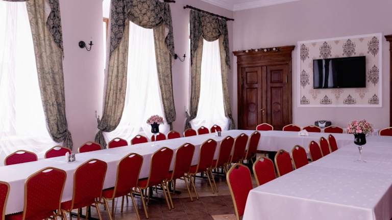 Das Hotelrestaurant befindet sich in einem geräumigen Zimmer mit klassischen Elementen und serviert traditionelle polnische Gerichte. Hier können Sie sich auf eine köstliche kulinarische Erfahrung freuen. Morgens wird ein reichhaltiges Frühstücksbuffet angeboten, das Ihnen einen guten Start in den Tag ermöglicht.