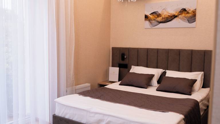 Das Hotel Palace Ukraine befindet sich im Stadtzentrum von Nikolaev, nur 10 Gehminuten von der Fußgängerzone Sovetskaya und 12 Gehminuten vom malerischen Fluss Yuzhnyj Bug entfernt. Der Bahnhof Nikolaev und der Flughafen Nikolaev sind jeweils 20 Minuten mit dem Auto entfernt.