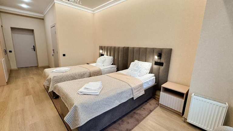 Das Hotel Palace Ukraine ist ein elegantes Hotel mit einer stilvollen und komfortablen Atmosphäre. Es bietet verschiedene Annehmlichkeiten, darunter eine Sauna und Konferenzeinrichtungen. WLAN steht den Gästen kostenfrei zur Verfügung. Zudem ist das Hotel mit einem elektrischen Generator und einem Bunker ausgestattet.
