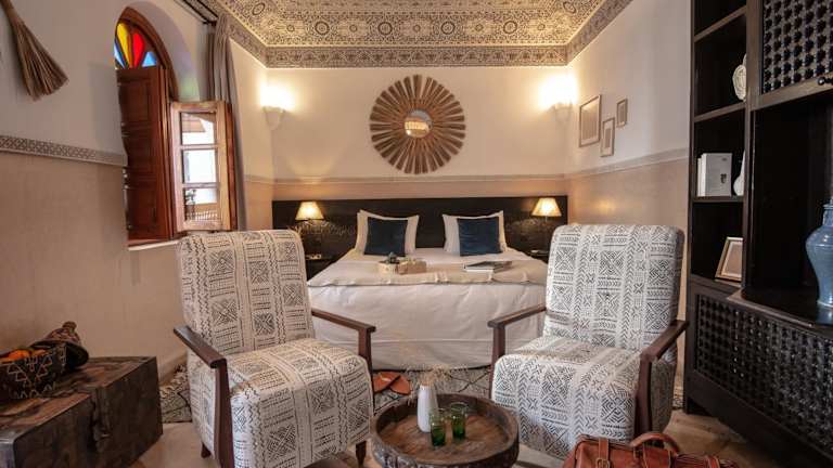 Das Riad Palais Calipau bietet eine traditionelle Atmosphäre und elegantes Design im marokkanischen Stil. Die Unterkunft umfasst 3 Junior-Suiten, 12 Suiten und 2 Doppelzimmer, ideal für einen entspannten Aufenthalt. Zu den Einrichtungen zählen ein Garten, ein TV-Raum, ein Massagezimmer, ein Hamam und ein beheizter Innenpool.