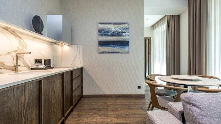 Die Zimmer im Hotel sind ausgestattet mit einer Klimaanlage, Heizung, Balkon, Kingsize-Betten, Safes, Minibars sowie Teezubereitungsmöglichkeiten. Alle Zimmer beinhalten ein Telefon, Sat-TV und kostenfreies WLAN. Das Badezimmer bietet sowohl eine Badewanne als auch eine Dusche, Haartrockner und Bademäntel sind ebenfalls vorhanden.