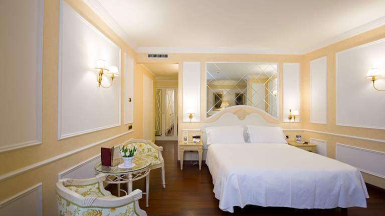 Das Palazzo Alabardieri bietet 33 Zimmer, darunter 4 Junior-Suiten. Die Zimmer sind über drei Etagen verteilt und mit einem Aufzug erreichbar. Jedes Zimmer ist stilvoll eingerichtet und verfügt über ein Doppelbett, einen Safe, eine Minibar und einen Schreibtisch. Zur Ausstattung gehören auch ein TV-Gerät mit Satelliten-/Kabelempfang, ein Radio und WLAN gegen Gebühr. Die Badezimmer sind mit einer Dusche oder Badewanne, einem Haartrockner und Pflegeprodukten ausgestattet. Es gibt auch rollstuhlgerechte Zimmer mit barrierefreien Bädern.